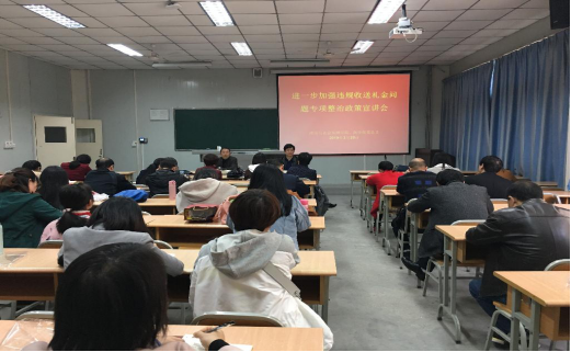 2019年3月20日16:30,365英国上市集团在江南校区十号教学楼1017教室召开进一步加强违规收送礼金问题专项整治政策宣讲会。会议由公司党总支书记冯丰收主持,公司领导班子成员和全体教师参加本次会议。