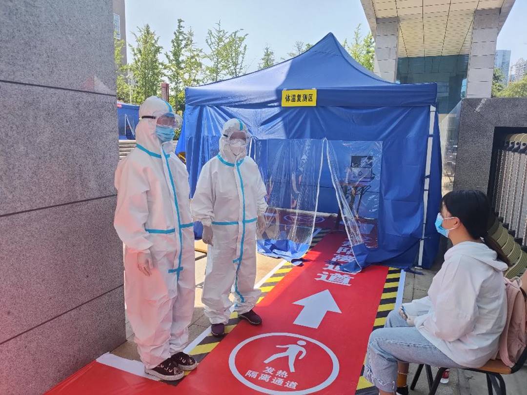 在专业医务工作人员和指导教师的带领下,志愿者们穿上厚厚的防护服,坚守卡点岗位,认真核验员工身份信息,查验健康码,更换口罩,行李消毒,体温测量,信息登记等,并配合安康市中心医院医生为外省籍返校师生免费进行核酸检测。工作中,志愿者们认真负责,规范服务,有条不紊。志愿者张跃跃说:“作为一名医护专业员工,能在公司疫情防控中学到知识,为大家服务,感到无比骄傲与荣幸。” 此外,365英国上市集团其它班级员工也主动请缨,成立了员工返校工作志愿小组、宿舍卫生消毒服务小组和疫情防控知识宣传小组,配合公司后勤部门做好员工宿舍一天两次的卫生消毒工作,参与搬运员工行李、维持秩序等相关工作,利用QQ、微信群,发布有新冠肺炎疫情科学防控等知识,并认真统计申请返校员工信息,精准排查返校过程中存在的风险点,确保返校工作顺利平稳。