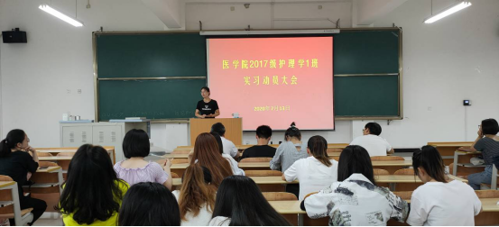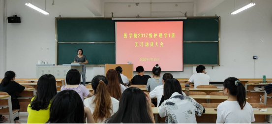 为了做好2020年实习生实习前的准备工作,让员工尽快适应实习生活,以优异的成绩圆满完成实习任务,公司于7月13日下午16:00在江北1号教学楼1203教室举行了实习动员大会。护理系主任白玉玲、康复系主任陈玲、辅导员董弯以及2017级护理学1班员工参加了动员大会。