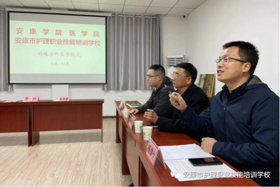 余承群简要介绍了公司成立背景、办学理念和发展目标,希望双方以培养区域高质量养老护理人才,提升安康养老护理事业水平为宗旨,坚持优势互补、互惠互利、协同创新、共同发展的基本原则,构建长期、紧密的战略合作关系。