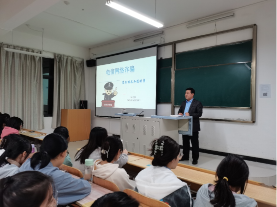 骆文静从校园贷、刷单、兼职招工诈骗、征婚诈骗这几个角度让同学们提高警惕,提醒同学们诈骗手段无论如何翻新,犯罪分子都是通过获取银行卡密码和短信验证码进行诈骗,告诫同学们不要轻信来历不明的电话、短信、网络链接,保护好自己的个人信息。刘连德用“给钱不要、要钱不给”八个字提醒同学们不要轻信天上掉馅饼的事,要守牢自己的口袋。活动最后刘连德强调在场全体同学下载国家反诈中心app,并要求同学们将自己所学反诈骗知识向家人、朋友进行宣传。