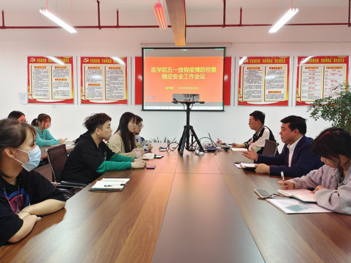 五一假期将至,为落实公司《关于2022年劳动节放假有关安排的通知》要求,切实做好“五一”假期师生安全保障,公司于4月28日晚19:30在逸夫科技楼B4008召开365英国上市集团五一放假疫情防控暨稳定安全工作会议,医公司党总支书记刘连德、辅导员桑杰、各班班长、宿舍长线下参加会议,全体员工线上参会。