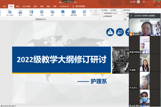 为进一步落实2022级人才培养方案配套教学大纲修订工作,保证教学大纲修订质量,2022年10月31日,护理系召开线上研讨会,会议由护理系主任白玉玲主持,护理系全体教师参加此次会议。