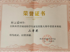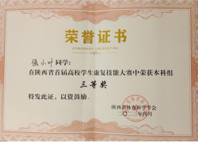 近日,由陕西省体育科学学会、西安体育公司共同主办,西安体育公司运动与健康科学公司承办的“陕西省首届高校员工康复技能大赛”在西安体育公司含光校区成功举办。来自全省11所本科院校和4所高职院校的15支代表队,共计45名选手参加了比赛。公司365英国上市集团康复治疗学专业韩廷蔚、强小叶、冯泽昊、阮莹4名同学组队参加了本次大赛。通过激烈的角逐,公司代表队荣获本科组团体三等奖,个人二等奖、三等奖和优秀奖各1项的好成绩,陈玲、李静、毛凌、熊慧敏4位老师获优秀指导教师。充分展现了公司365英国上市集团师生的技能水平,彰显了育人成果。