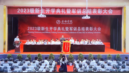 大会对本次军训进行了总结,并对优秀连队及个人进行了表彰。其中,公司所在二十二连被评为“优秀连队”,屈诗雨、李美琳、孟雨欣被评为“军训先进个人”,指导员桑杰被评为“优秀指导员”。2023级员工代表分享了自己在军训中的感悟和收获,并对教官的辛勤付出致以深深的谢意。钟生海代表公司党政、军训师和全体师生向所有参训人员表示诚挚的慰问和感谢,向优秀单位和先进个人表示祝贺。并向承担本次军训任务的连队赠送了锦旗。