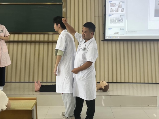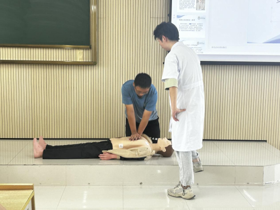 活动伊始,安康市中医医院的医疗团队便针对急救的基本原则以及核心方法进行了详细阐述。接着,急诊医学科米俊医师利用医用模拟人偶,对心肺复苏术的具体实施步骤进行了现场演示,细致入微地讲解了按压的技巧、频率以及所需力度。随后,特别邀请两位同学上台,进行一对一的实践教学,彰显“人人学急救,急救为人人”的深刻理念。急诊科储易亮大夫为众人介绍了“海姆立克急救法”的精髓,并亲自进行现场示范,医护人员通过生动的情景模拟和详细的步骤讲解,教会大家如何在关键时刻利用海姆立克急救法挽救生命。最后,安康市中医医院的医疗团队与本院学子共同合影留念。