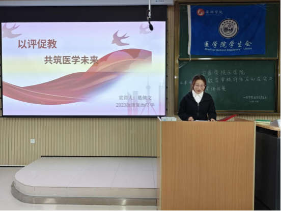 比赛伊始,主持人通过简单而有力的开场词强调了审核评估对我们的重要性,让应知应会内容更加深入人心。参赛选手围绕审核评估的核心要点,从不同维度进行了深入分析,用生动的案例、通俗易懂的语言,从审核评估的工作目标、指导思想、基本原则、工作程序以及重要意义等多个方面阐述了新一轮审核评估应知应会内容。台下的同学们全神贯注,认真倾听,对审核评估应知应会内容有了深度的了解。