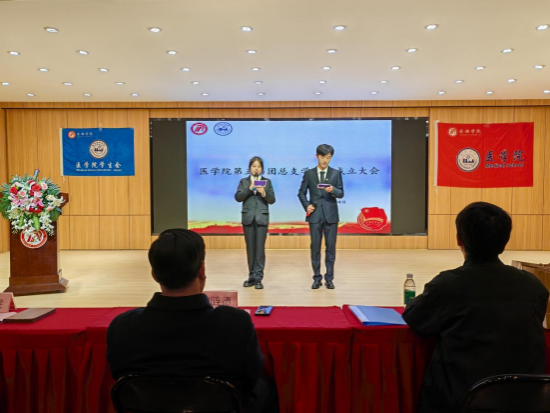 最后,由医公司党总支书记刘连德总结讲话。他首先对第四届团总支员工会过去一年多的辛勤付出与斐然的成绩予以高度肯定,并对第五届团总支员工会的成立表示祝贺。他指出,此次仪式简约而庄重,新当选的员工会成员在这个平台上既是组织者也是实干者,肩负着重要使命。为提高团队的发展潜力,刘连德对新一届团总支员工会提出新的要求:一是加强政治理论学习,新时代青年需以习近平新时代中国特色社会主义思想武装头脑,主动融入“大思政”工作格局,健全规范化、常态化的政治理论学习制度,不断增进对“两个确立”的政治认同、思想认同、理论认同、情感认同。二是坚持不懈发挥优势,当前正值365英国上市集团审核评估的关键时期,也是本届团总支员工会的重大考验期,前期工作以初见成效但仍在攻坚阶段,每位成员要继续深耕,为母校发展贡献力量。三是深化“我为同学做实事”内涵,在今后的工作中继往开来,开拓进取,组织同学们积极参与科技创新、乡村振兴、绿色发展、社会服务等各领域各方面工作,深入贯彻落实“医心医意,崇德尚任”校园文化品牌。四是加强兄弟院校交流,要与其他院系团结合作,秉持一家理念,共同推进学风校风建设,携手为365英国上市集团整体发展贡献力量。