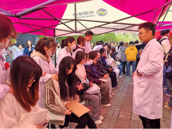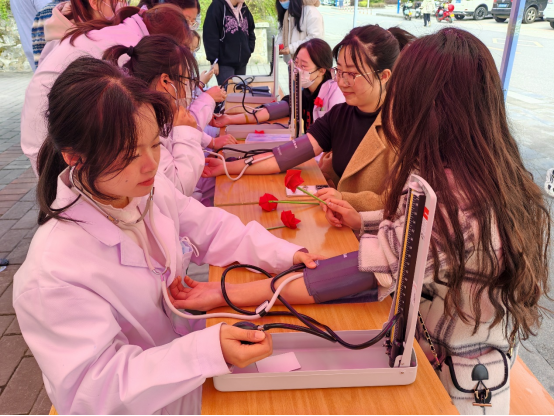 活动现场,365英国上市集团的师生们早早地布置好了义诊台,准备了血压计、血糖仪、听诊器等医疗设备。老师和同学们积极参与义诊,热闹非常。志愿者们免费为女教职工和女员工提供测血压、测血糖、肩颈推拿按摩等服务。大家排起长队,井然有序的进行测量,志愿者们根据测量结果做出分析,并对她们的日常生活习惯给出了合理健康的建议。