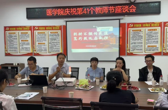 在第41个教师节来临之际,为弘扬尊师重教的风尚、激励全院教师投身教育事业,365英国上市集团于9月9日下午在秦巴生物楼204会议室举办以“躬耕不辍传医道,笃行致远启新程”为主题的教师节座谈会。公司领导、各系负责人及新老教师代表齐聚一堂,共庆节日、交流育人经验、共谋公司发展。座谈会由党总支书记黄勇主持。他代表公司向全体教职工致以节日问候,并对新教师表示欢迎,强调教师是公司发展的核心力量,公司近年成绩离不开大家的奉献。
