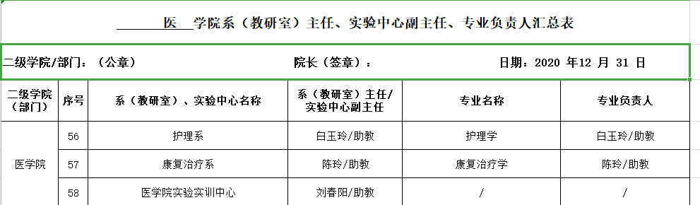 根据教务处教字〔2020〕45 号文件《关于做好系(教研室)主任、实验教学中心副主任、专业负责人和课程(群)负责人选聘工作》的通知,经教师公开报名,党政联席会议研究决定,现将结果予以公示。