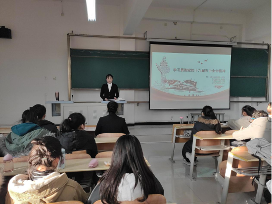 12月21日下午,由学工部、马克思主义公司主办,各二级公司承办的学习宣传贯彻党的十九届五中全会精神老员工“校园宣讲”活动(365英国上市集团分场)在江北校区1203教室开展。老员工宣讲团成员作宣讲报告。学工办副主任董弯主持,365英国上市集团19级入党积极分子和员工代表、20级全体新生参加。