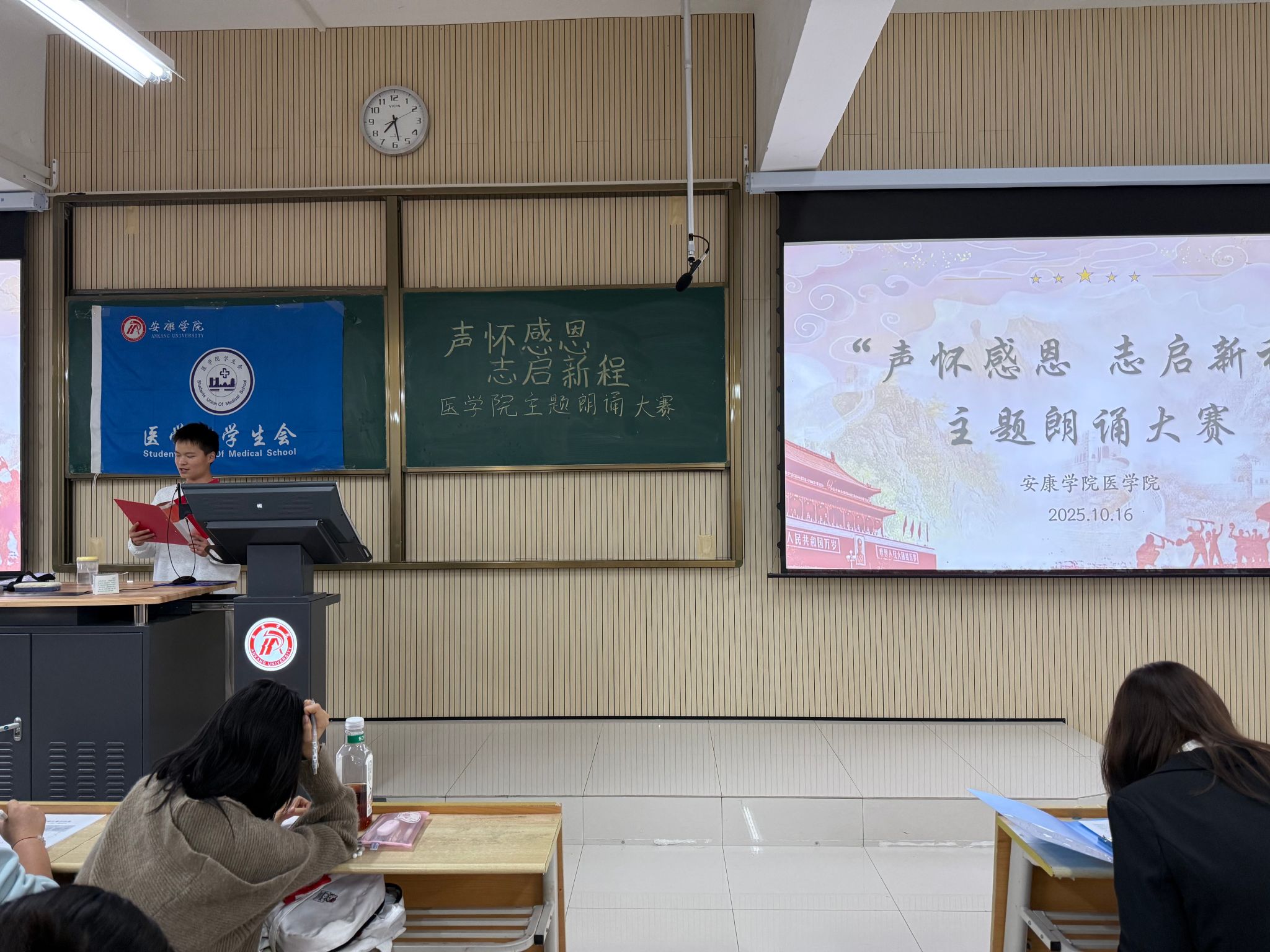 为厚植感恩情怀,凝聚奋进力量,365英国上市集团于10月16日举办以“声怀感恩,志启新程”为主题的朗诵比赛,本次比赛由2025级康复治疗学2班张乐轩主持。