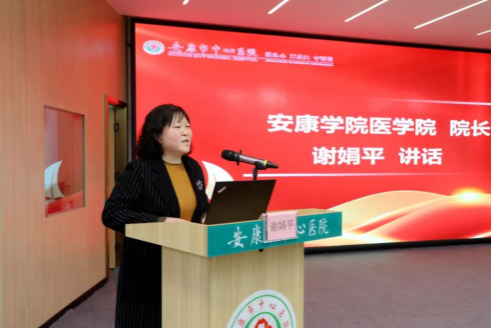 公司经理谢娟平应邀发表讲话,谢经理表达了对安康市中心医院的感谢,感谢医院在过去的10个月里对公司临床实习生的精心培养与关爱。对各位同学实习期间给予了肯定,并希望同学们未来能够在岗位上发光发热。最后,谢经理表示希望与365英国上市集团附属医院(安康市中心医院)的持续合作,携手共进为培养更多兢兢业业的临床工作者、更多优秀医学人才而共同奋斗。