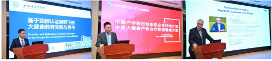 德国ASIIN认证协会主席Prof.Dr.Klaus Kreulich和中德大健康产教合作联盟筹备委员会主任杨晖教授分别以《德国应用型人才培养的模式及质量体系建设》和《国际认证视野下大健康教育实践与思考》为主题做了报告,分享了德国的应用型人才培养的经验和我国大健康相关专业认证的实践思考,与会专家学者展开了热烈的交流研讨。