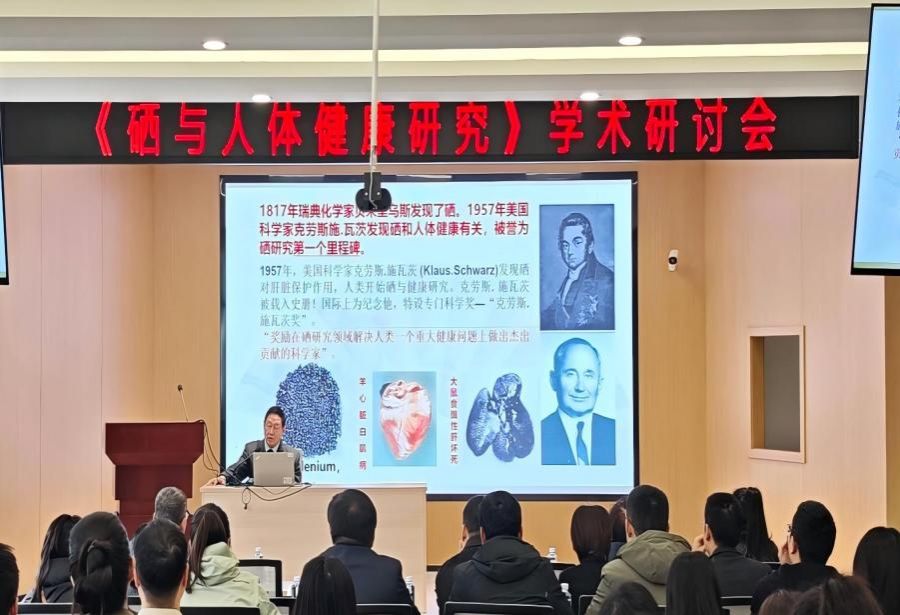 王治伦教授结合其五十余载的科研深耕,系统阐述了硒的发现历程、与人体健康的密切关系及其在疾病防治中的重要作用。他从抗氧化、增强免疫力、防治心脑血管疾病及抗癌等多个维度,揭示了硒元素的独特价值,并强调了科学补硒对于健康中国建设与富硒产业发展的深远意义。讲座内容翔实,逻辑清晰,既有理论高度,又紧密结合生活实际,现场气氛热烈,掌声不断。