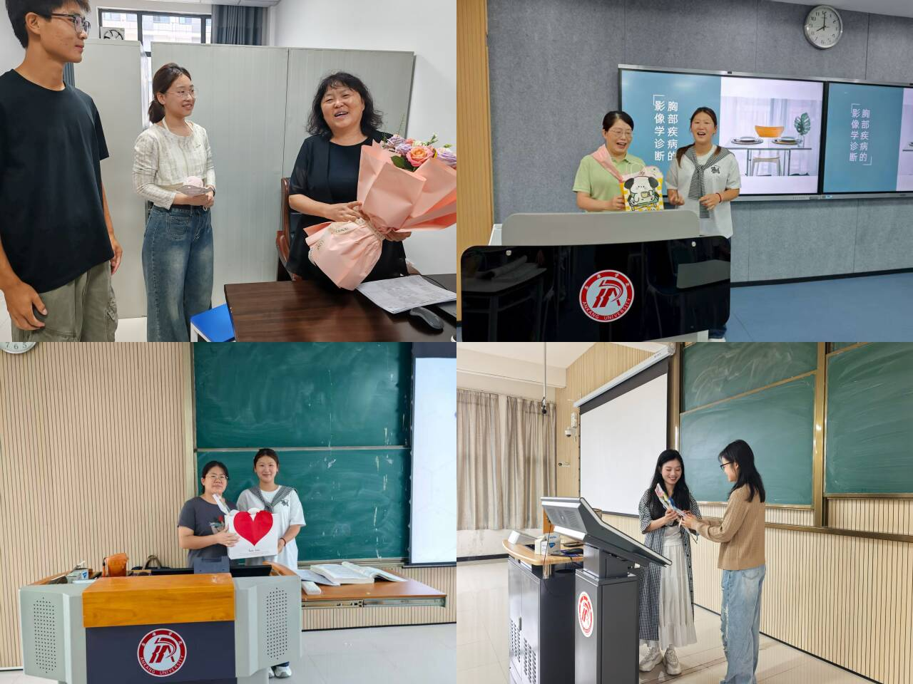 为向老师们表达最诚挚的敬意,员工们在课堂上给老师送上“老师,辛苦了!”、“老师,教师节快乐!”等祝福。员工会干部代表全体员工向老师赠送鲜花和保温杯,传递对教师的感恩与祝福。同时用影像定格师者的坚守与关爱,记录着师生间的双向奔赴。