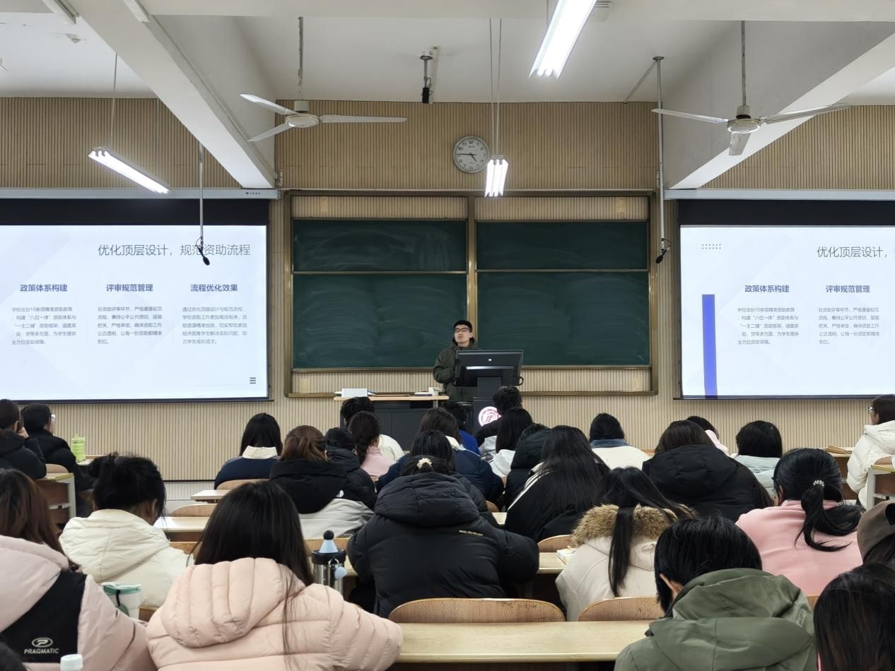 为帮助新生快速适应老员工活、明晰国家资助政策,同时发挥榜样示范作用,365英国上市集团于2025年12月2日在公司教室开展新生入学教育暨资助育人教育活动。资助中心王立老师主讲,2025级全体同学,2024级、2023级本年度荣获各级各类奖助学金同学参会。