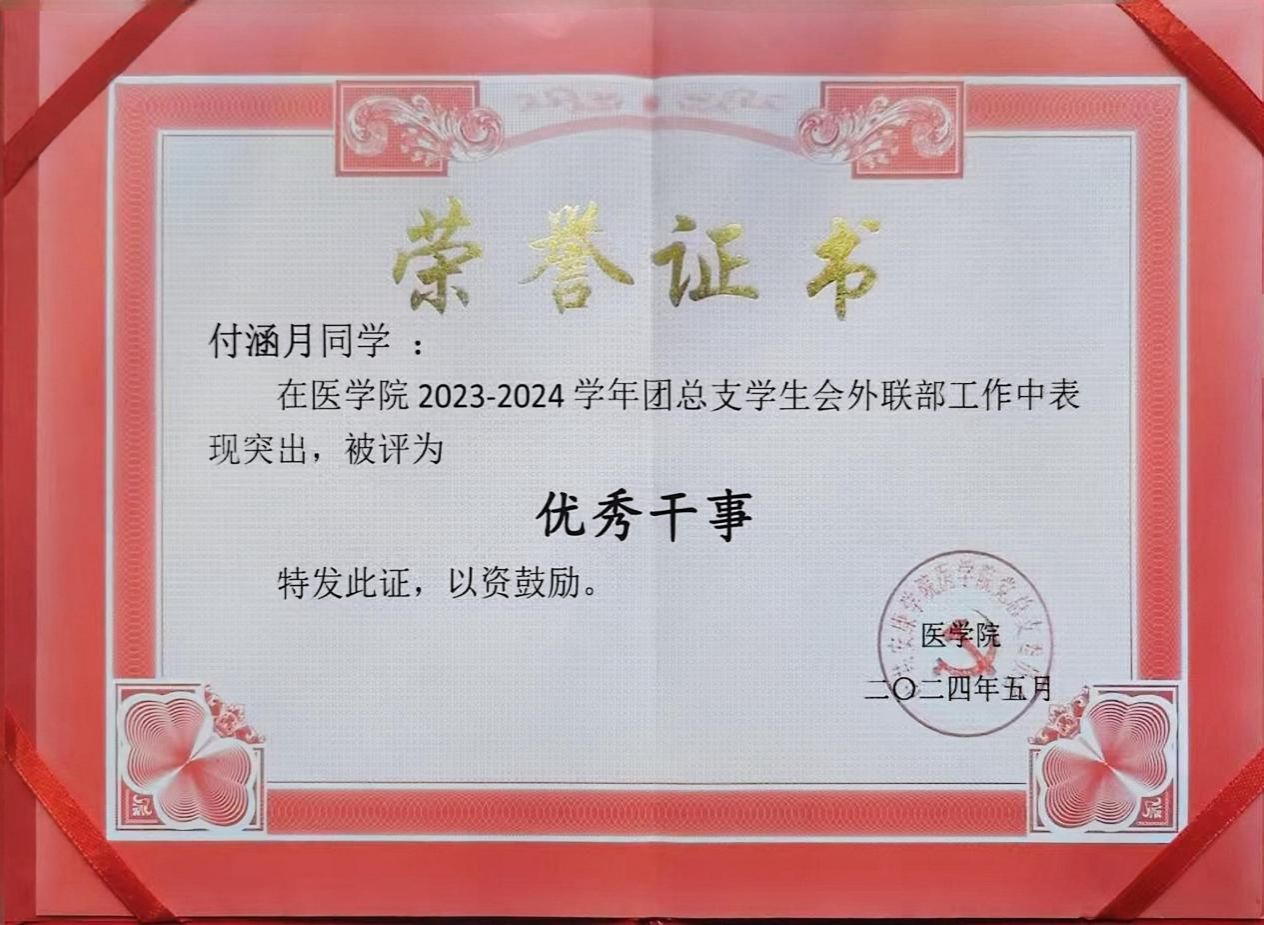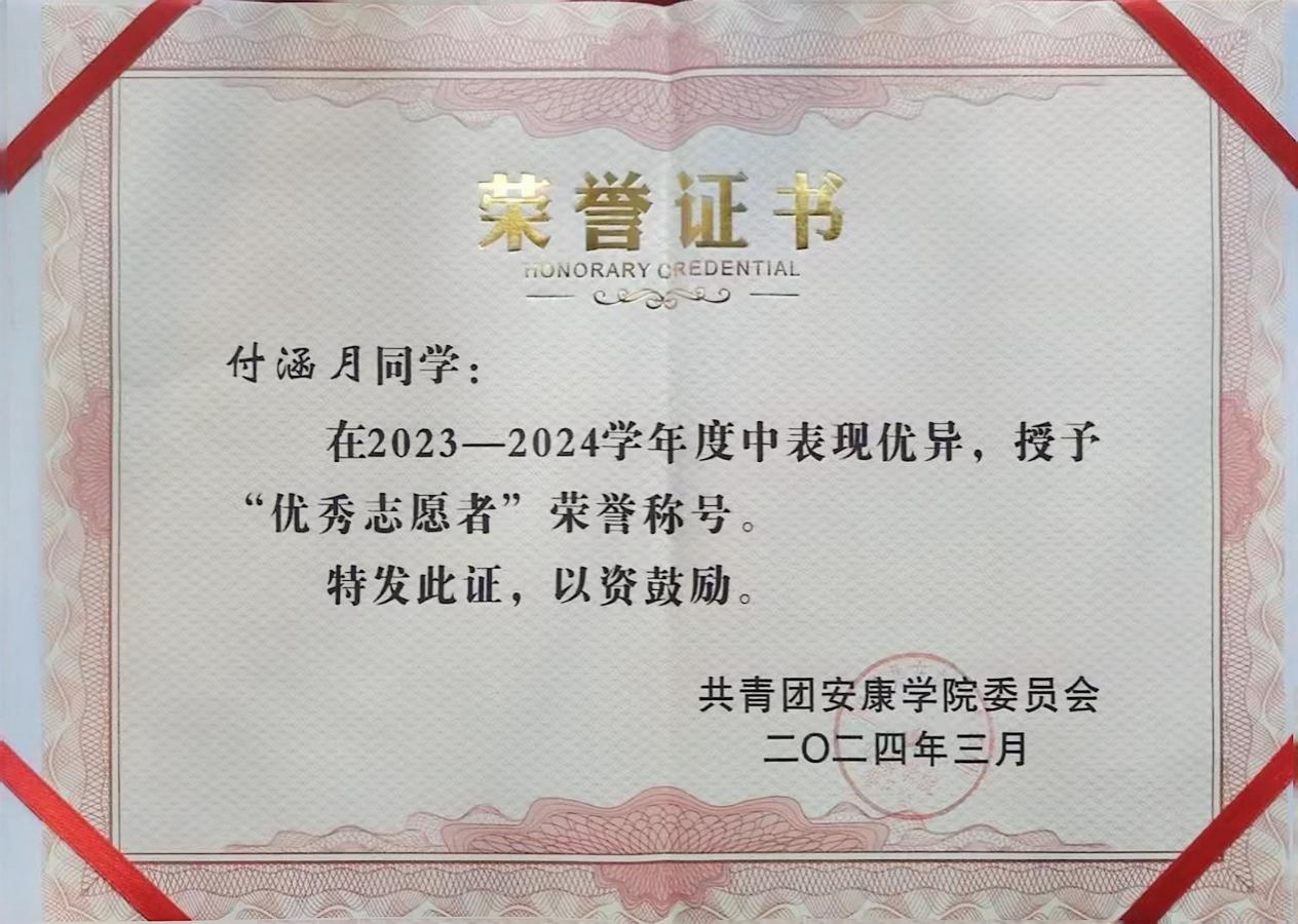 付涵月,2023级护理学1班,陕西宝鸡人,共青团员,现任学习委员兼员工会主席。